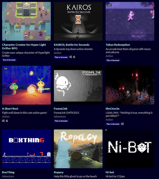 Beaucoup de jeux de Gamejams et quelques projets fait pendant mes études sont disponibles sur itch.io